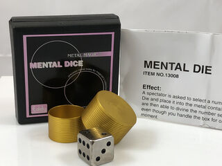 Basic Effect: You ask a spectator to place a metal dice into a metal container and cover it with a medal lid. You're able to read their minds as they think of the number on top of the die inside the metal container. Easy to perform. A very well made prop.