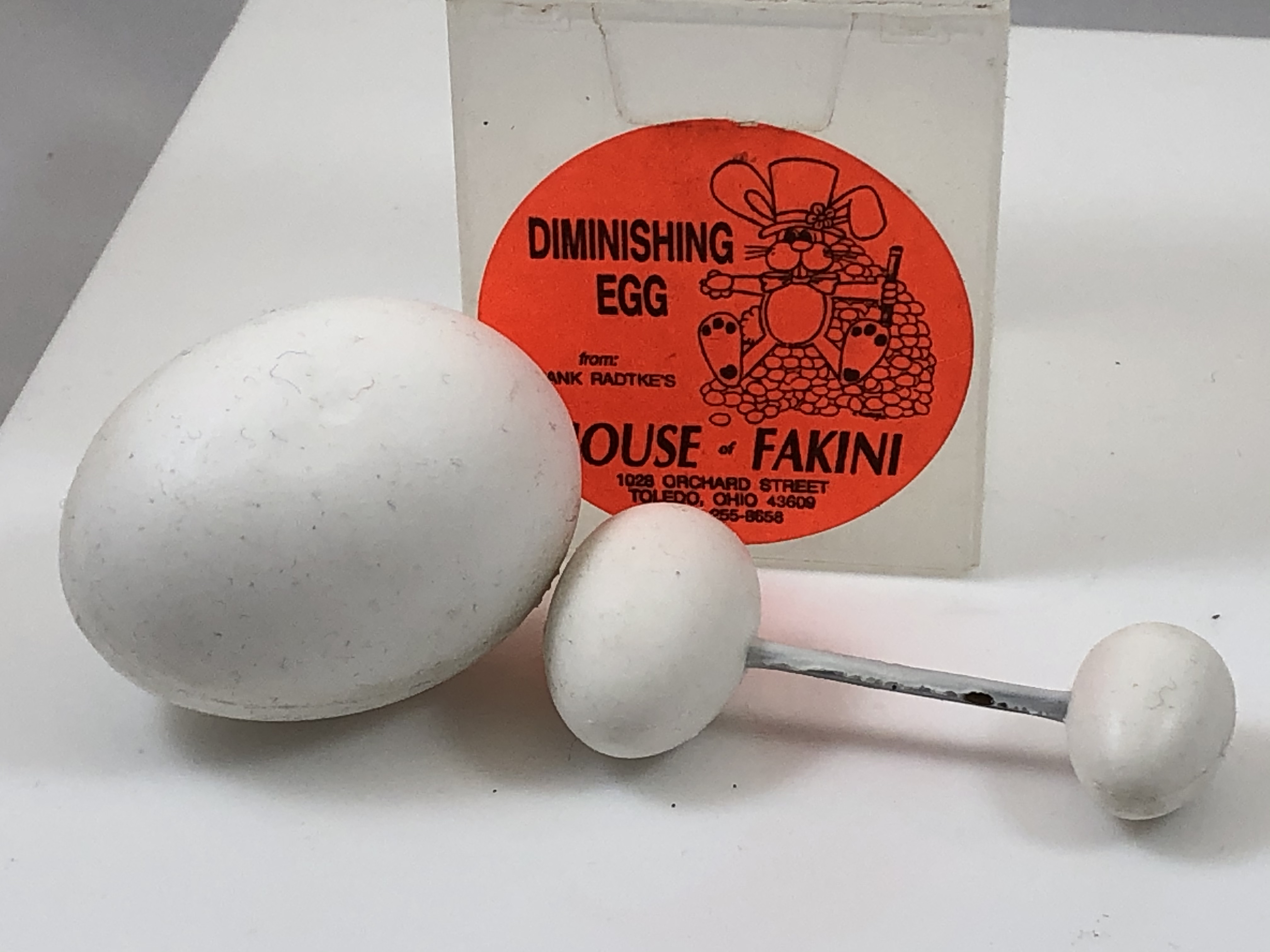 The Diminishing Egg matches the multiplying eggs in quality and material. It works just like the Diminishing Golf Ball Trick which has been around for years, but now made in top quality!