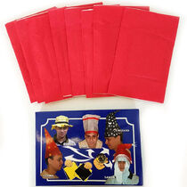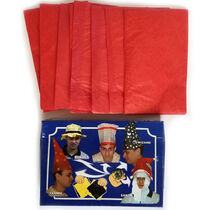 Basic Effect: The magician displays two sheets of tissue paper and tears them into two different pieces giving two sheets to an audience volunteer who is instructed to tear their pieces just like the magician and magician says "We will restore our pieces together". The volunteer is left with several torn pieces but the magician takes their pieces and ads them to his & restores the paper to a Party Hat which is placed on the volunteer's head.