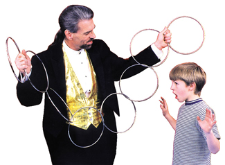 The Linking Rings are a classic magic effect. The magician shows solid rings then magically links and unlinks them. This set has eight 8-inch solid metal rings. There are many books, even on this website, available with various routines.